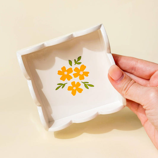 Scallop Trinket Tray-Floral Cream