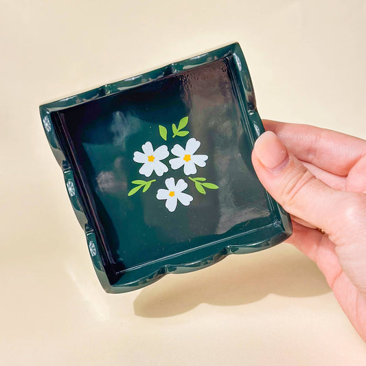 Scallop Trinket Tray- Floral Dark Green
