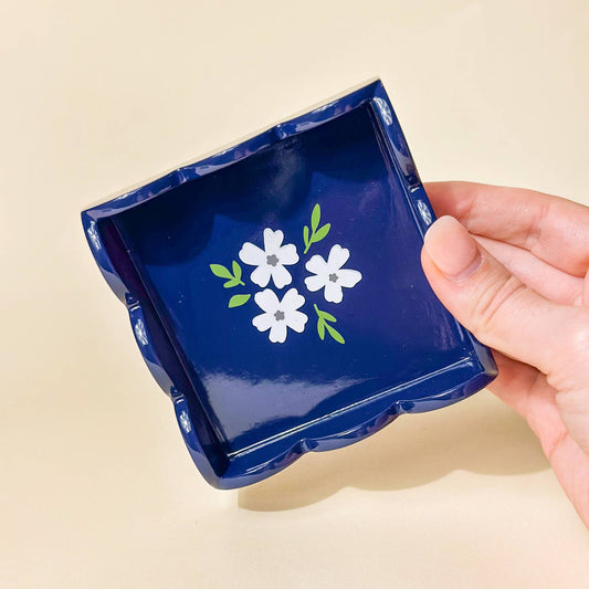 Scallop Trinket Tray- Floral Navy