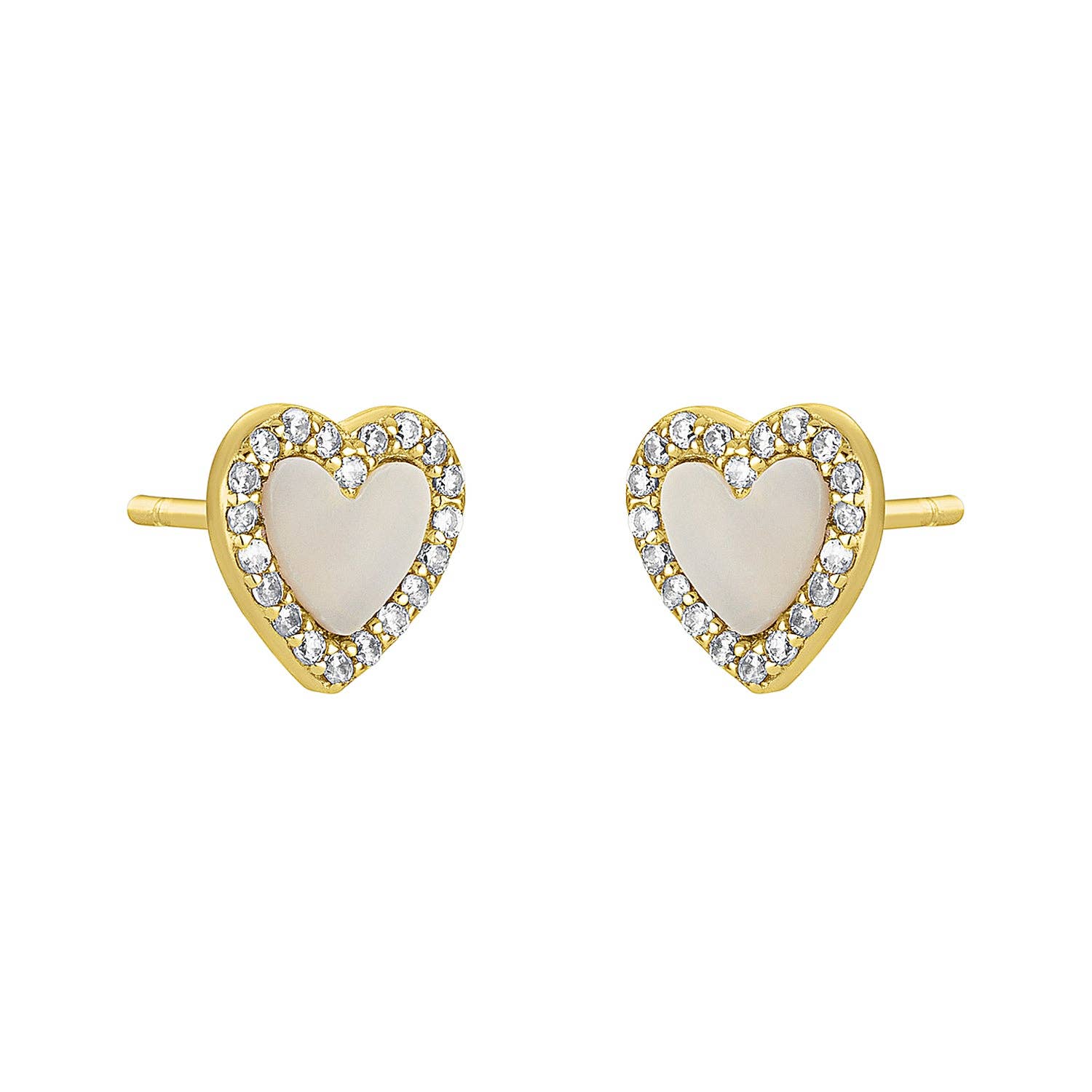 18k gold plated sterling silver, cubic zirconia, mother of pearl, hypoallergenic.