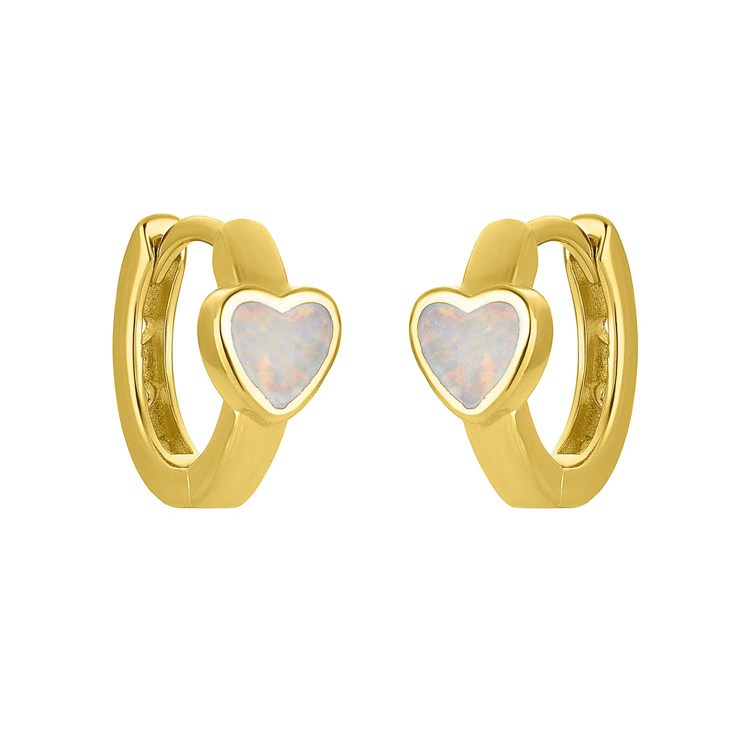 18k gold-plated sterling silver, opal, hypoallergenic. Comes packaged on our heart-shaped "littles" earring card.