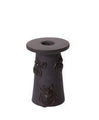 Spruce up your Halloween display with the whimsical Scuttling Spiders Collection. Crafted from natural black clay with a matte finish, the candleholder is perfect for a standard taper candle.