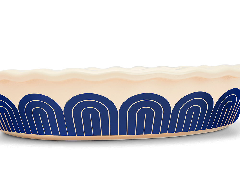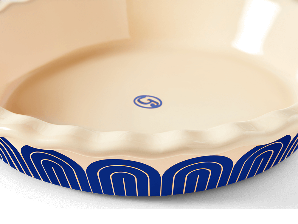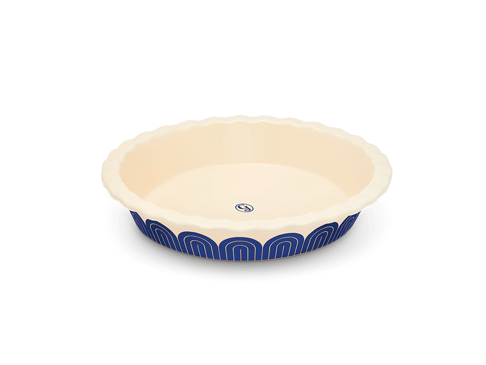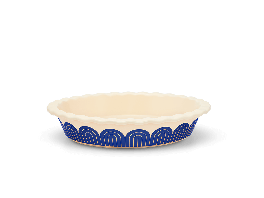 Our 10-inch ceramic pie dish looks as cute as it sounds. The wide, wavy rim will help guide your crust crimping, turning amateur bakers into all-stars. Plus, it distributes heat evenly and consistently produces golden-brown crusts.